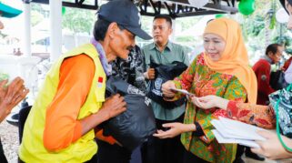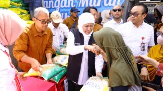Gubernur Khofifah Bersama Ratusan Warga Bulak Banteng Surabaya Meriahkan Pasar Pangan Murah