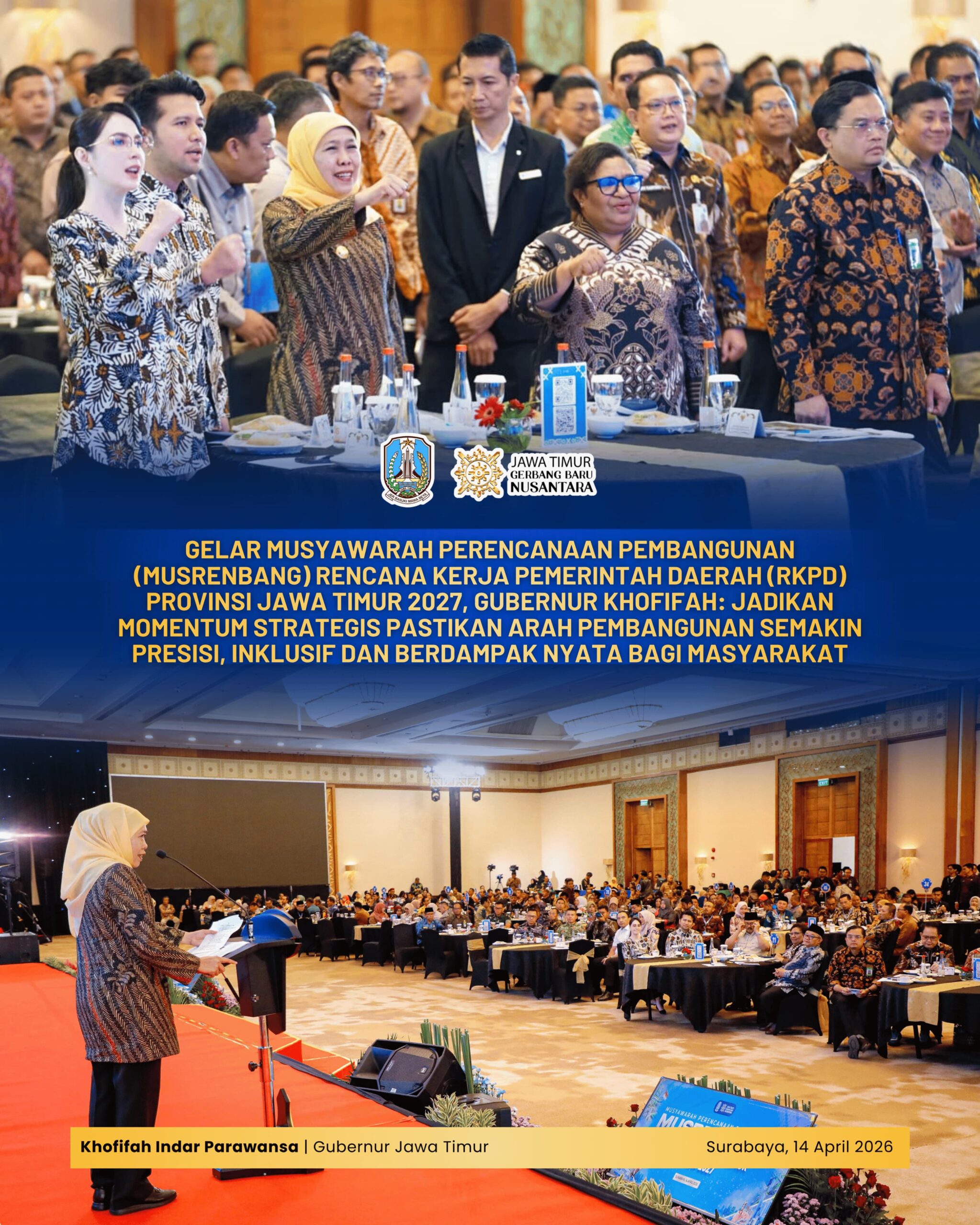 “Musrenbang ini bukan sekadar forum tahunan, tetapi momentum strategis untuk memastikan arah pembangunan Jawa Timur semakin presisi, inklusif, dan berdampak nyata bagi masyarakat,” ujar Khofifah.