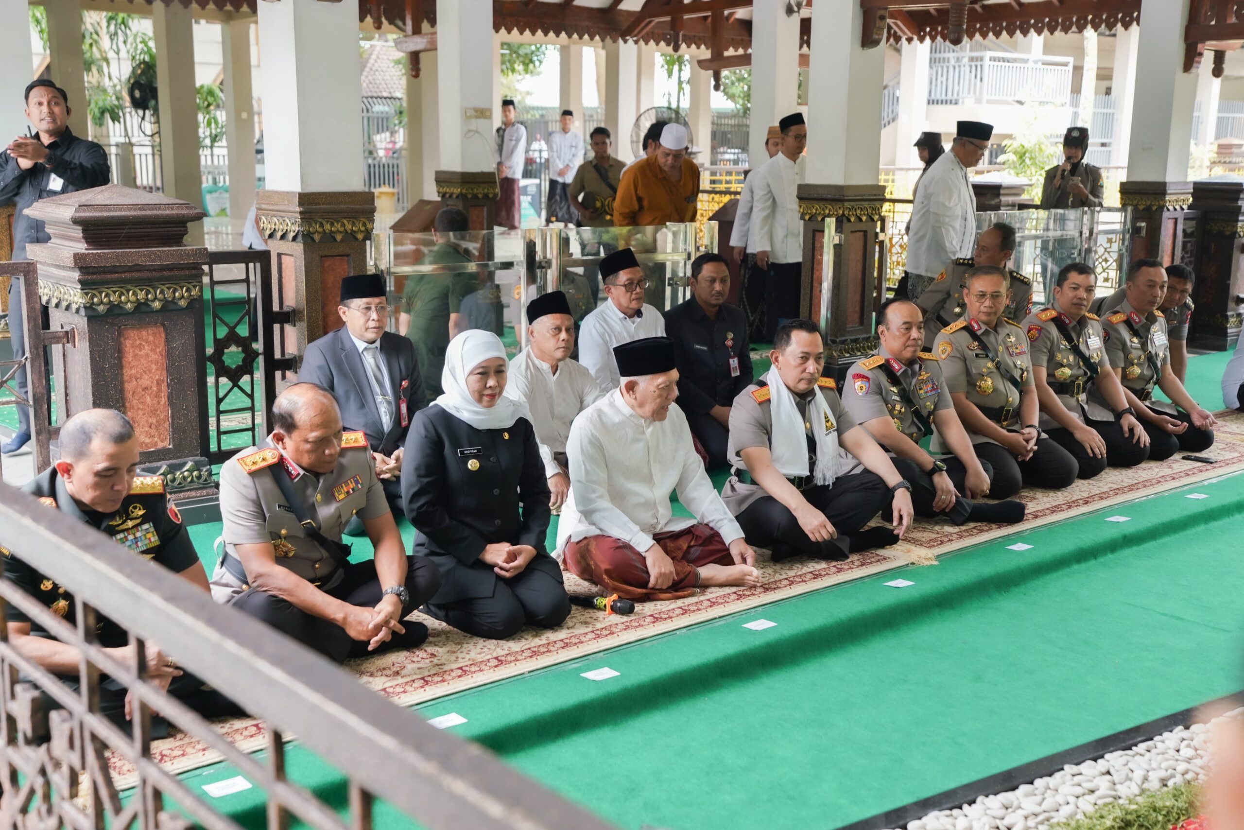 Setibanya di area pemakaman Gus Dur, Gubernur Khofifah bersama Kapolri beserta jajaran PJU Mabes Polri serta Kapolda Jatim menabur bunga yang dilanjutkan dengan berdoa bersama yang dipimpin oleh Pengasuh Ponpes Tebu Ireng KH. Abdul Hakim Machfud atau Gus Kikin.