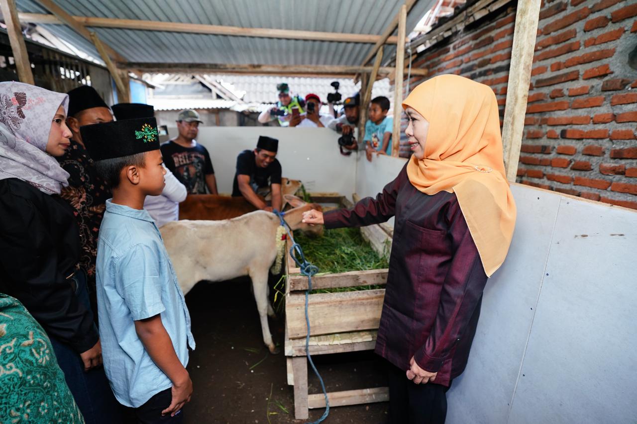 “Alhamdulillah diizinkan, maka kemarin kita bikinkan kandang dan dikirim dua ekor sapi dengan nama Sri dan Jeki dari kata Sri Rejeki,” ungkap Khofifah.