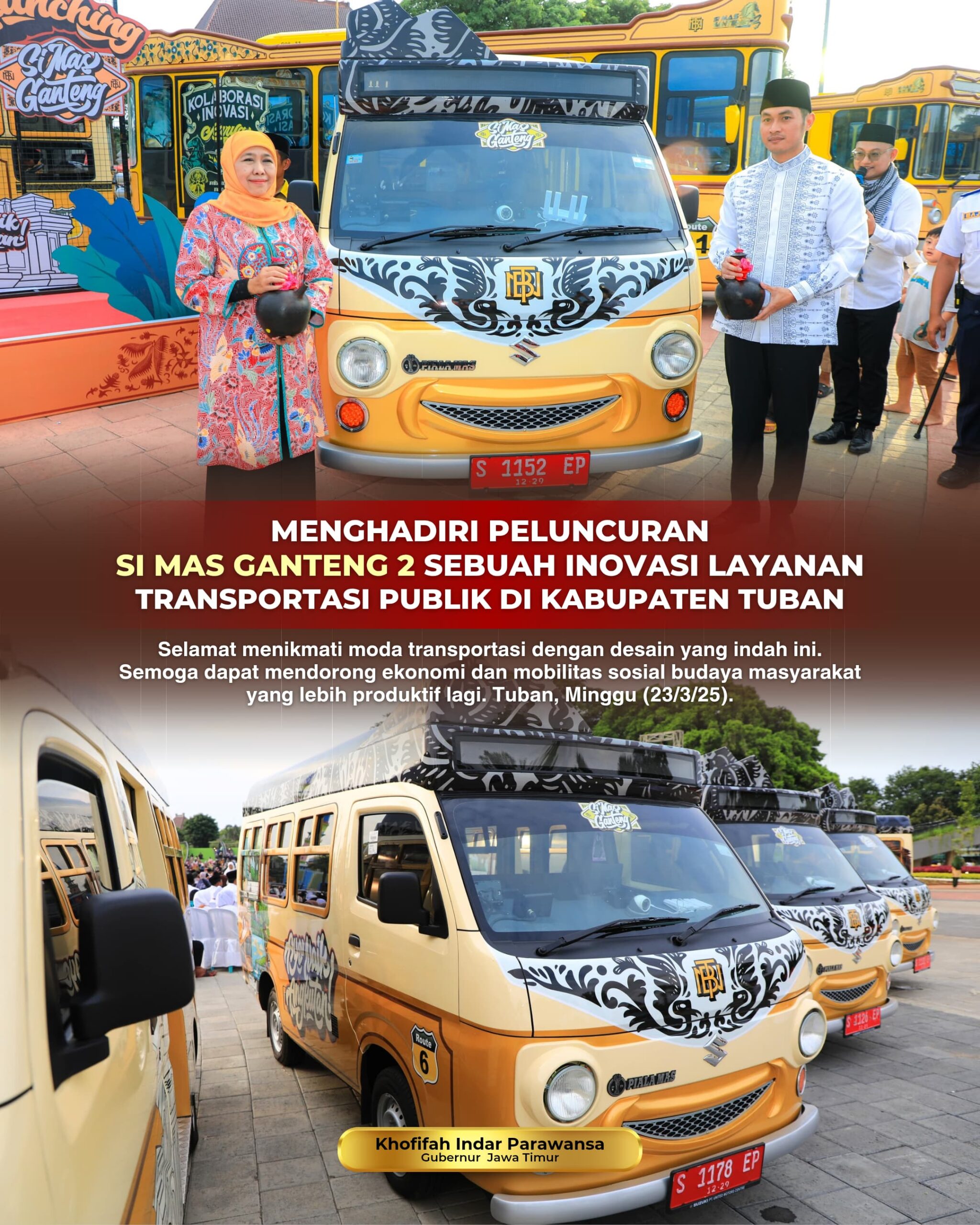 Gubernur Khofifah mengatakan, keberadaan Si Mas Ganteng 2 ini diyakini memberi dampak positif bagi kegiatan sosial ekonomi melalui integrasi layanan transportasi bagi masyarakat hingga kecamatan di Kabupaten Tuban.