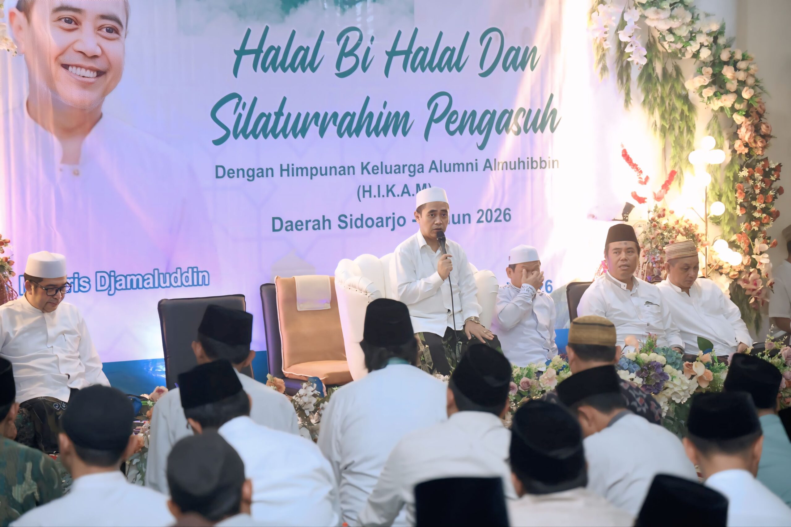 Harian Cakrawala – SIDOARJO, 18 APRIL 2026, Himpunan Keluarga Alumni Al-Muhibbin (HIKAM) wilayah Sidoarjo menggelar Halal Bihalal bersama Pengasuh Bumi Damai Al-Muhibbin Pondok Pesantren Bahrul Ulum Tambakberas Jombang di kediaman KH. Muhammad Fauzi, S.E., Perumahan Mutiara Citra Graha, Candi, Kabupaten Sidoarjo, Sabtu (18/4) malam. Kegiatan ini dihadiri ratusan alumni dari Sidoarjo, Mojokerto dan wilayah sekitar lainnya.