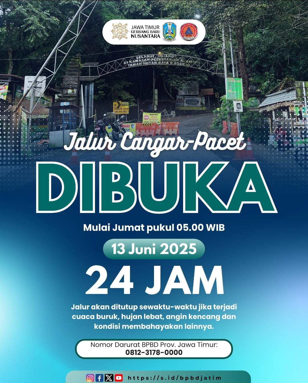 Hasilnya, kondisi jalan di jalur Cangar-Pacet dinyatakan baik layak dan aman untuk dilalui. Oleh karena itu, mulai tanggal 13 Juni 2025 jalur tersebut sudah bisa dibuka selama 24 jam.
