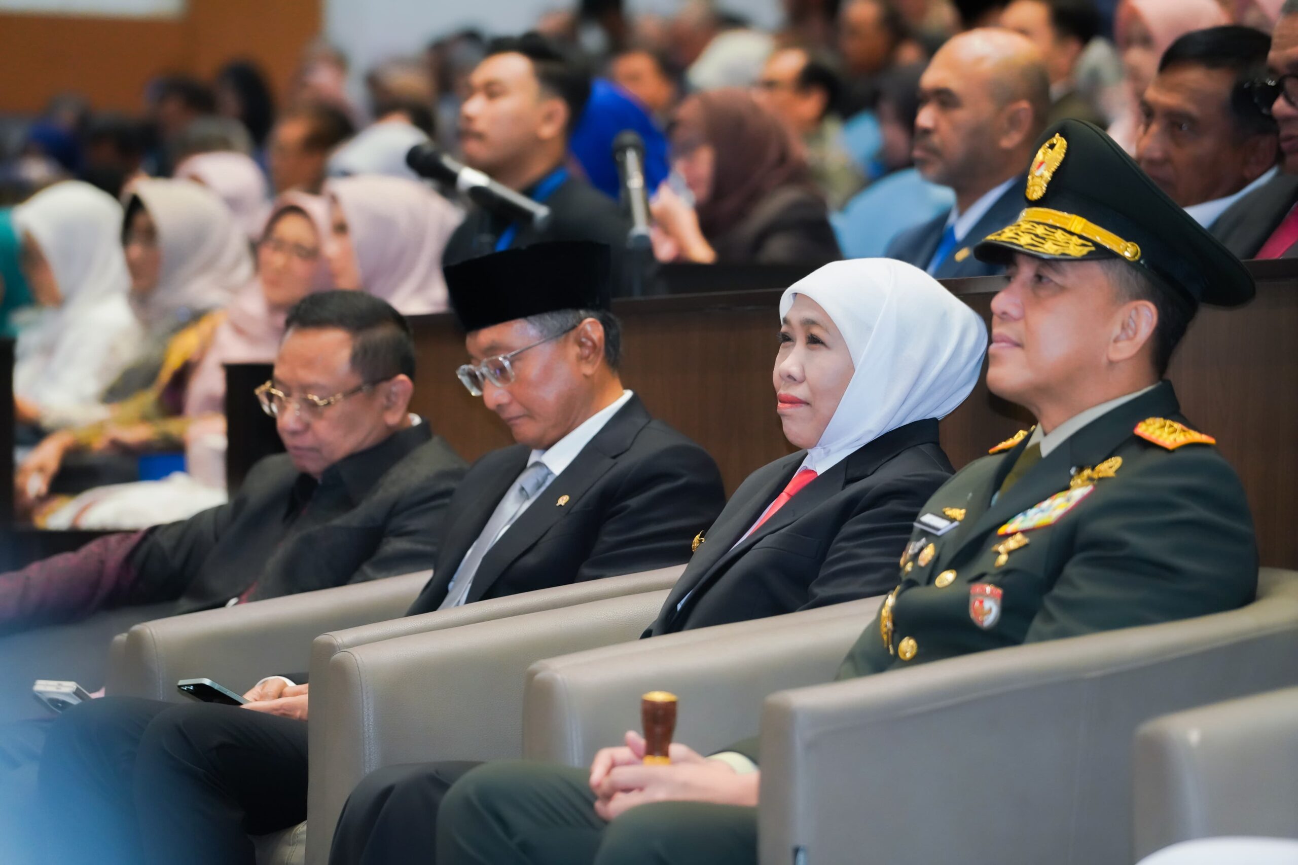 Tak lupa, Gubernur Khofifah juga menyampaikan terima kasih pada Rektor UNAIR periode 2015-2025 Prof. Muhammad Nasih atas dedikasinya selama memimpin UNAIR.